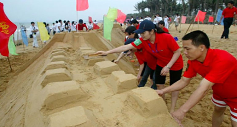 企业文化最好的呈现莫过于一点一点的深入人心。企业的历史、当下、未来都可以在沙雕中一一呈现,并由我们的最可爱的企业员工用沙堆积并凝固起来,然后雕琢成各种各样的造型的艺术。整个团队通力合作完成一幅专属于企业的沙滩巨画,记录一路走来的艰辛,撞景未来的美好前程。