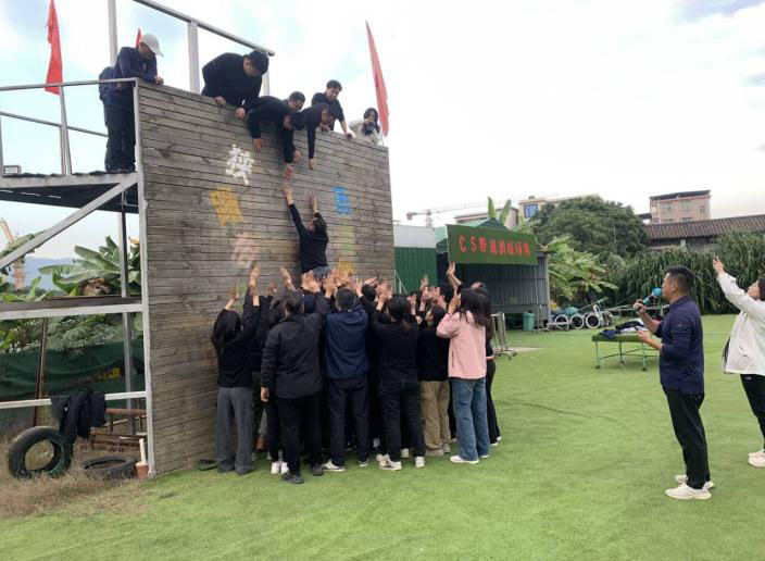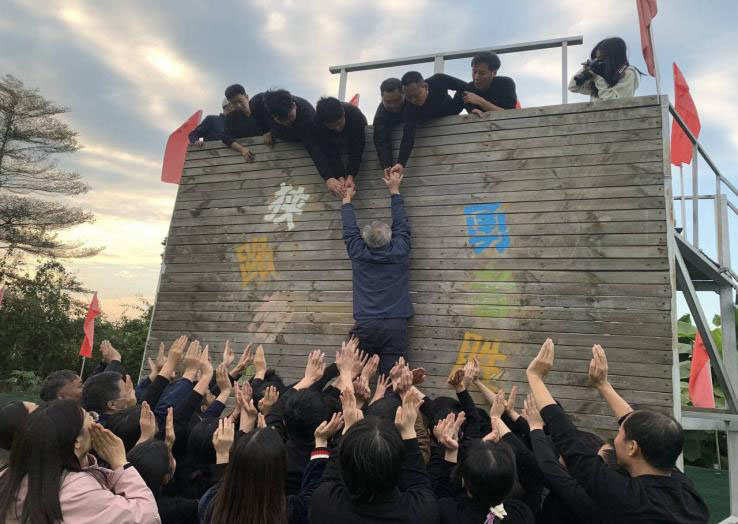 这个项目的名字叫求生,也叫毕业墙。全体学员不借助任何外力,不抛弃不放弃,翻越4.2米的高墙。这是最后收尾的项目,让我们懂得个人目标与团队目标的关系,团队协作与执行,团队付出和奉献精神。