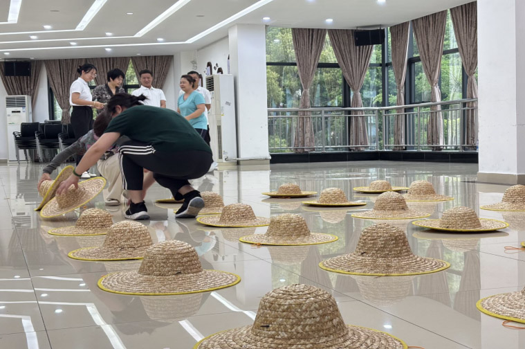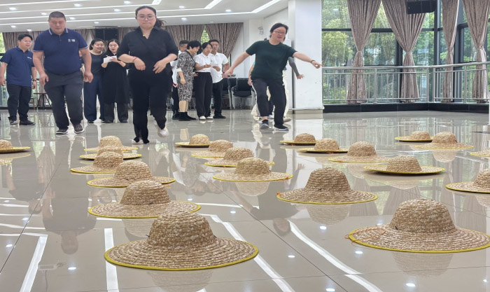 放置外形相同的草帽在场地划定范围内,每个帽子下面都有一种水果(图片代表)。每个小队轮流派人进入放置草帽的场地竞猜。每次只能依次打开两个草帽; 如果两个草帽下的水果相同,那么便可以将水果带走,如果水果不同类,须将草帽盖好然后返回。计划是否简单而且高效,是否能形成标准;彼此的认同及如何快速产生共鸣共识;团队协作及集体荣誉感;